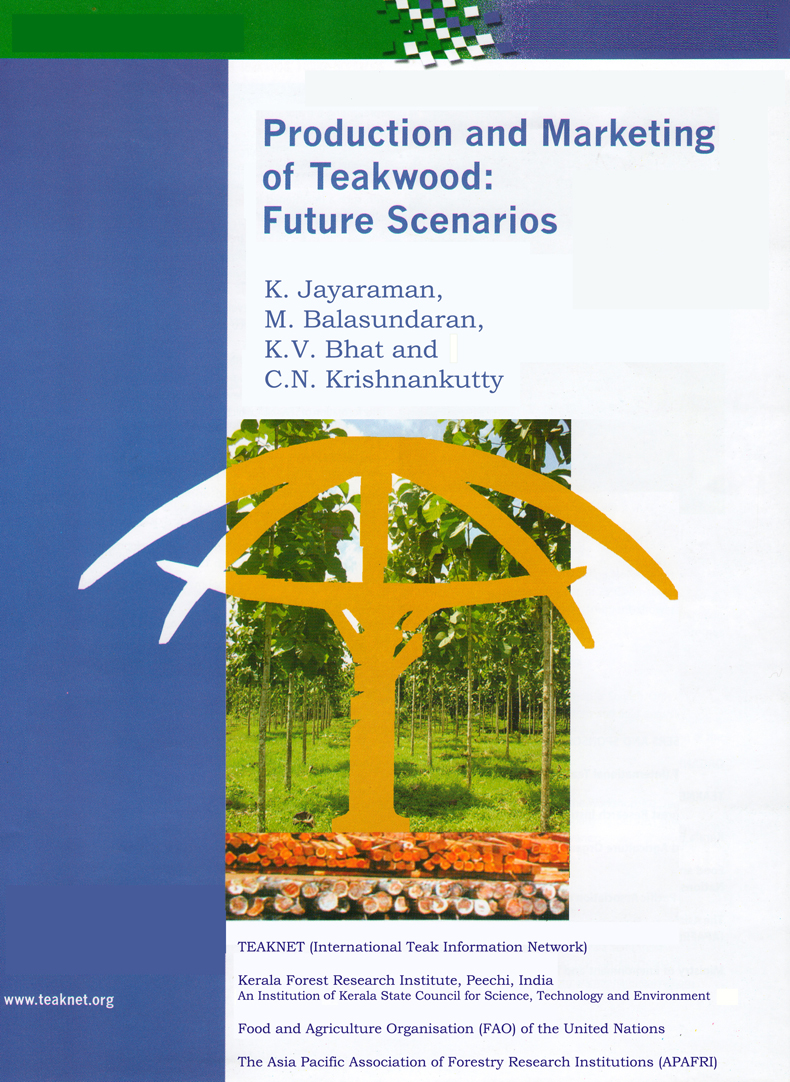 The proceedings of the International Workshop on Production and Marketing of Teakwood: Future Scenarios, 23-25 November 2009 KFRI, Peechi, Kerala, India The Proceedings of the International Workshop on ‘Production and Marketing of Teak: Future Scenarios’ has been prepared in the form of CD. The CD is available in KFRI library. For more details please contact library@kfri.org